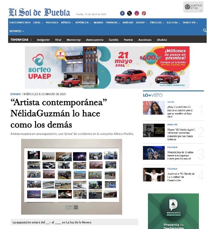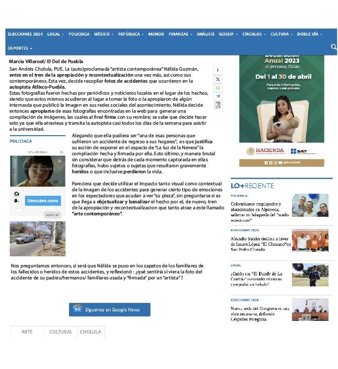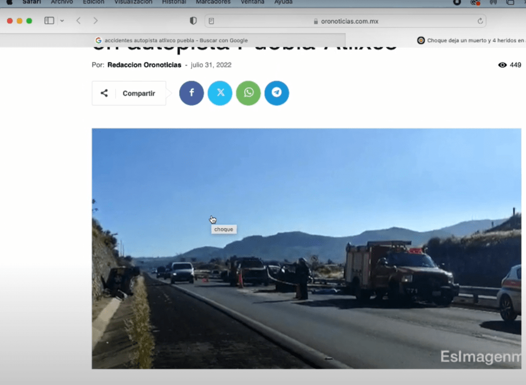 «Crónica de una muerte anunciada», video donde cuento la historia de un ejercicio de clase incitado a ser expuesto, hecho a partir de imágenes recopiladas de la web de accidentes ocurridos en la autopista Atlixco-Puebla.