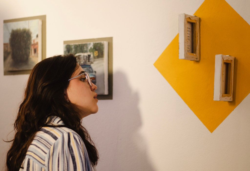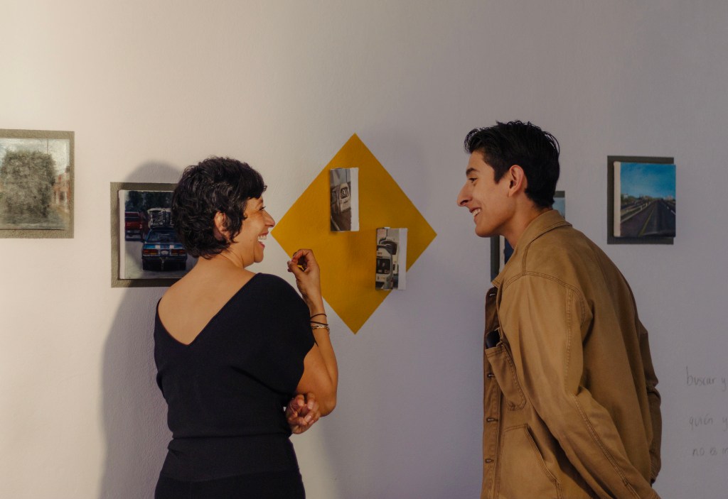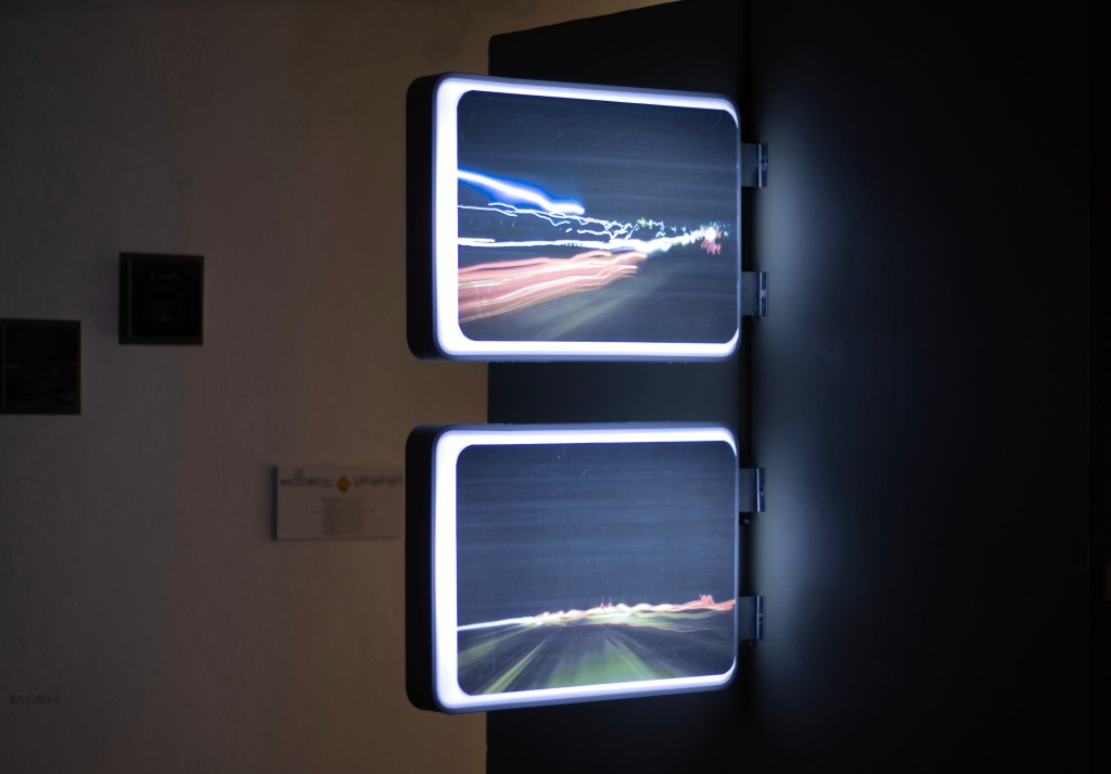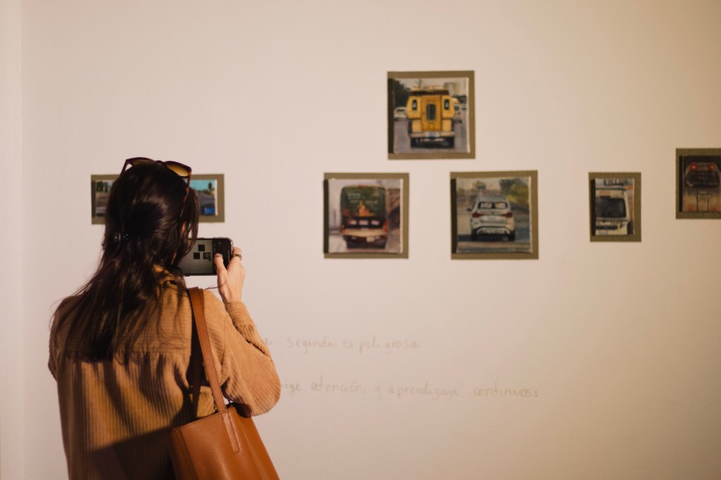 Para concretar esta fuga, Nélida fue realizando durante varios meses una bitácora, en donde se concentraron los acontecimientos, textos e imágenes con las que la artista fue encontrándose durante distintos trayectos en carro, mismos que siguió elaborando a partir de lo pictórico, lo fotográfico y la imagen en movimiento. Esta bitácora también fue acompañada por círculos de reflexión con otras artistas, lo que permitió analizarla críticamente, derivando en aspectos vinculados a diferentes tipos de violencia que se hacen presentes en calles y carreteras, a quien puede tener un automóvil propio y quien no y, no menos importante, la contaminación del medio ambiente a causa de la utilización de coches en las grandes ciudades. Retomando nuevamente a Illich cuando escribe sobre conceptos como la circulación, el transito y el transporte, esta muestra se propone como un espacio para circular y contemplar, para espejearse, para transitar, de tal manera que pueda seguirse elaborando esta reflexión trascendiendo el espacio físico que alberga esta propuesta.